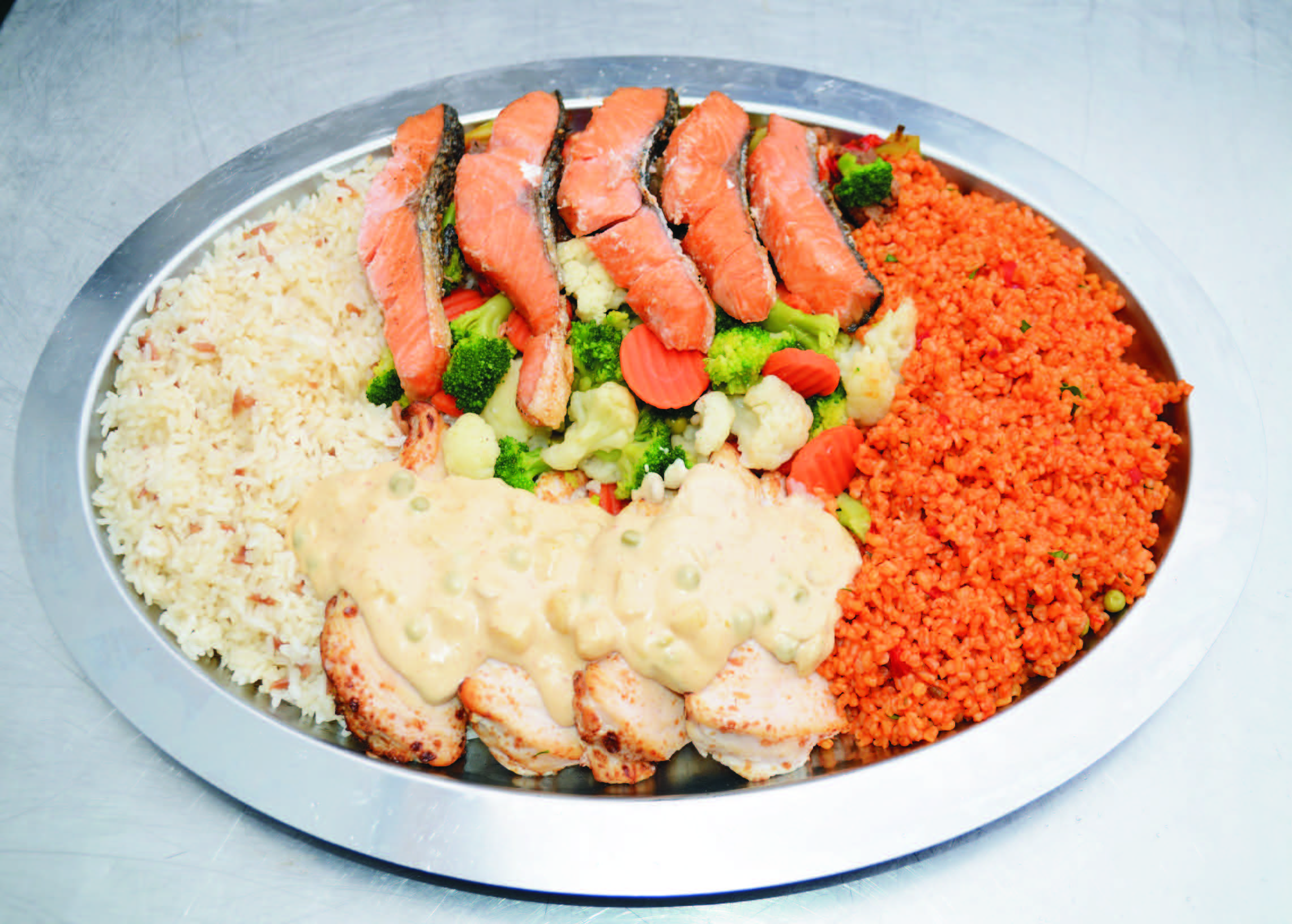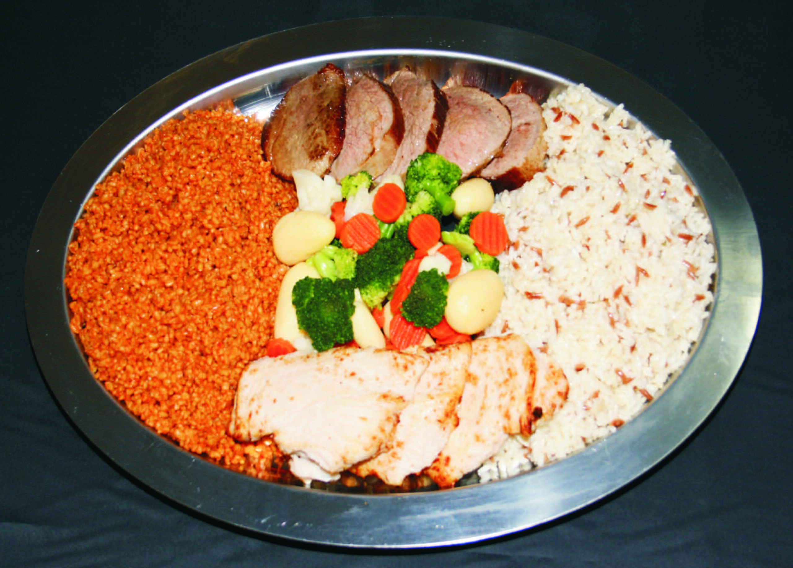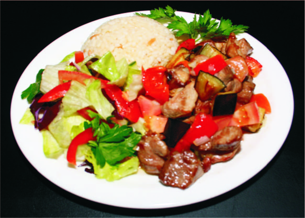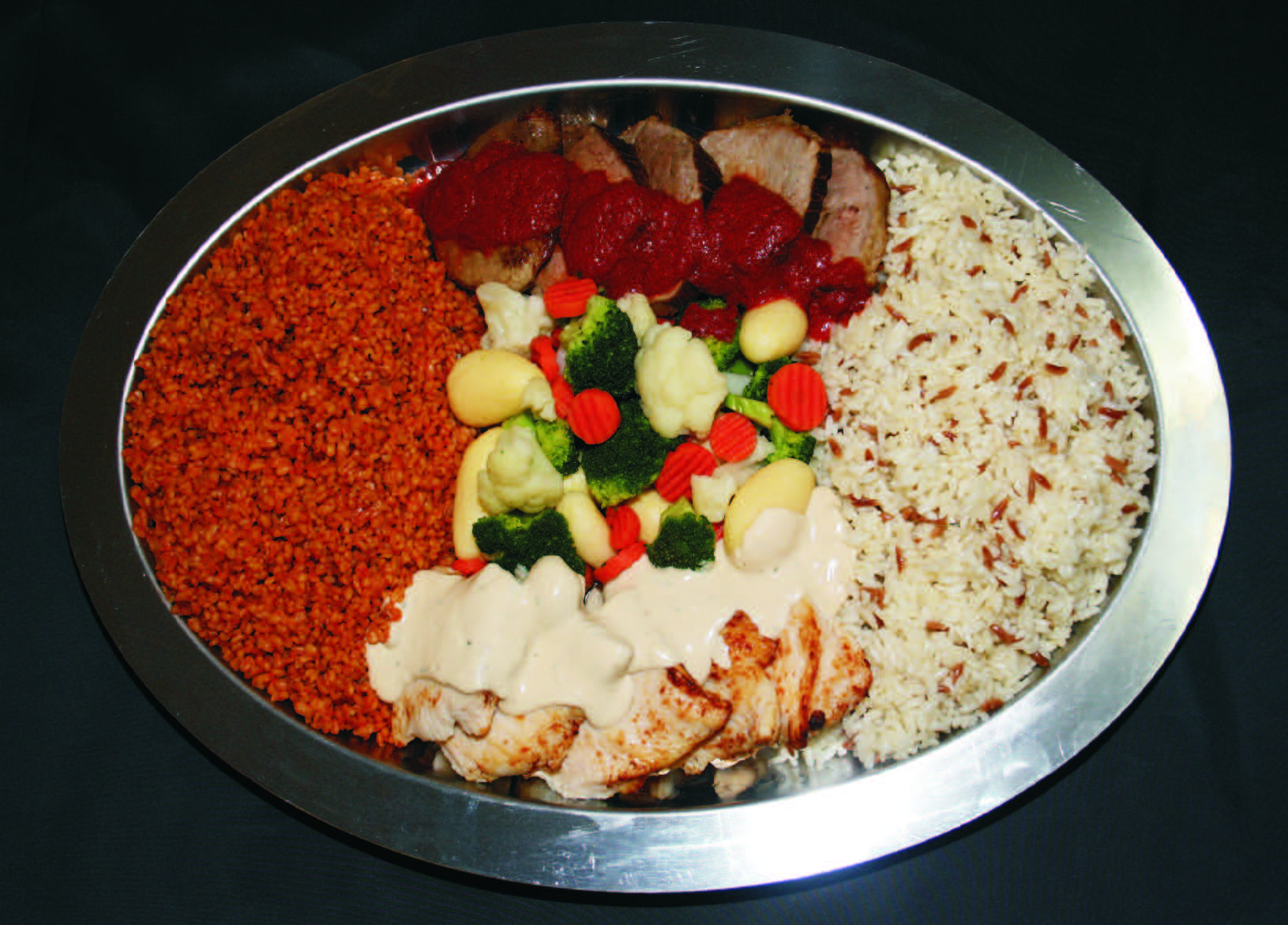 92.4 Kisilik Plate Pirinc Bulgur Sebze Tavuk Gögsü Soslu Rosto ve Sis Kebab