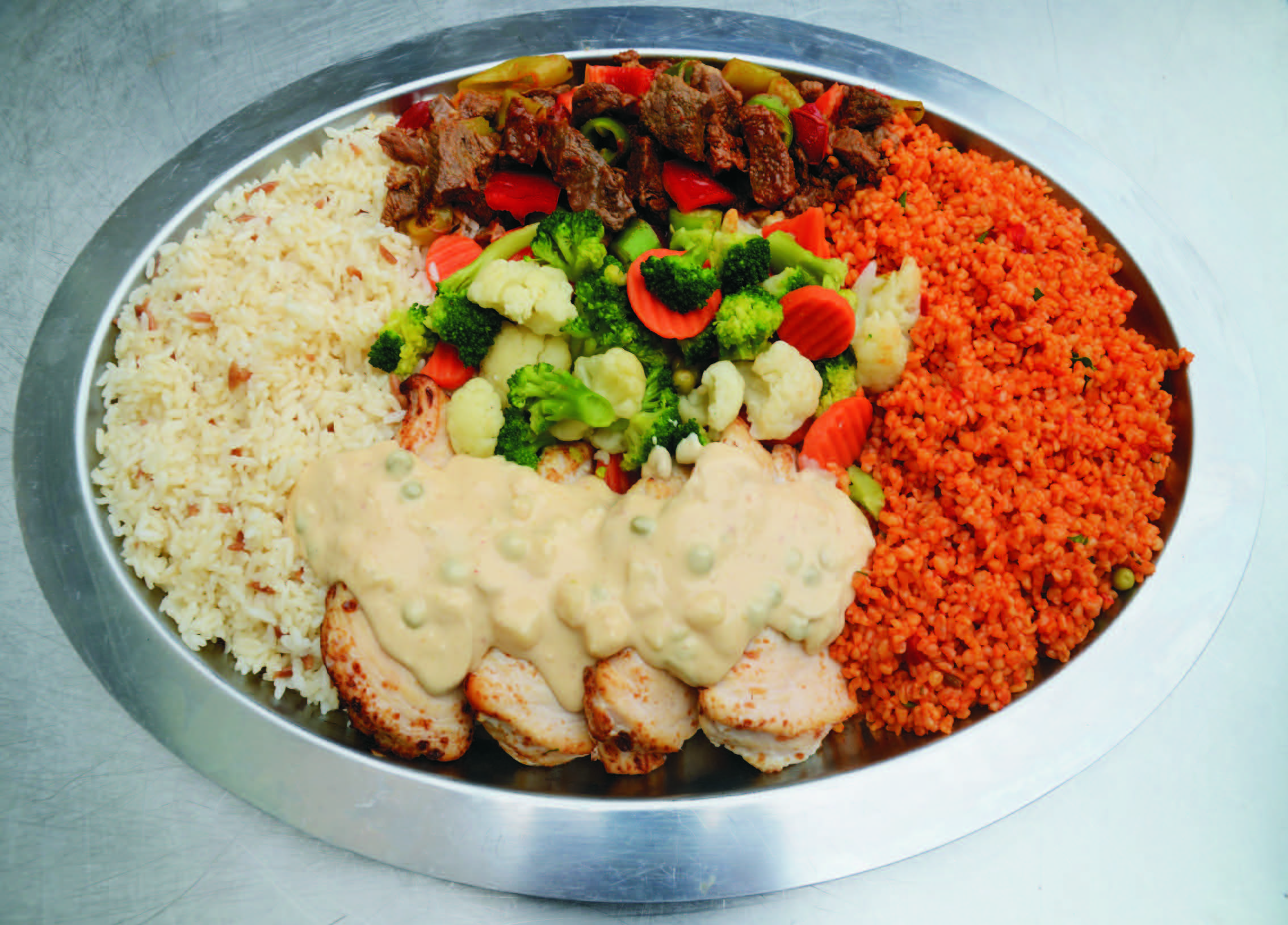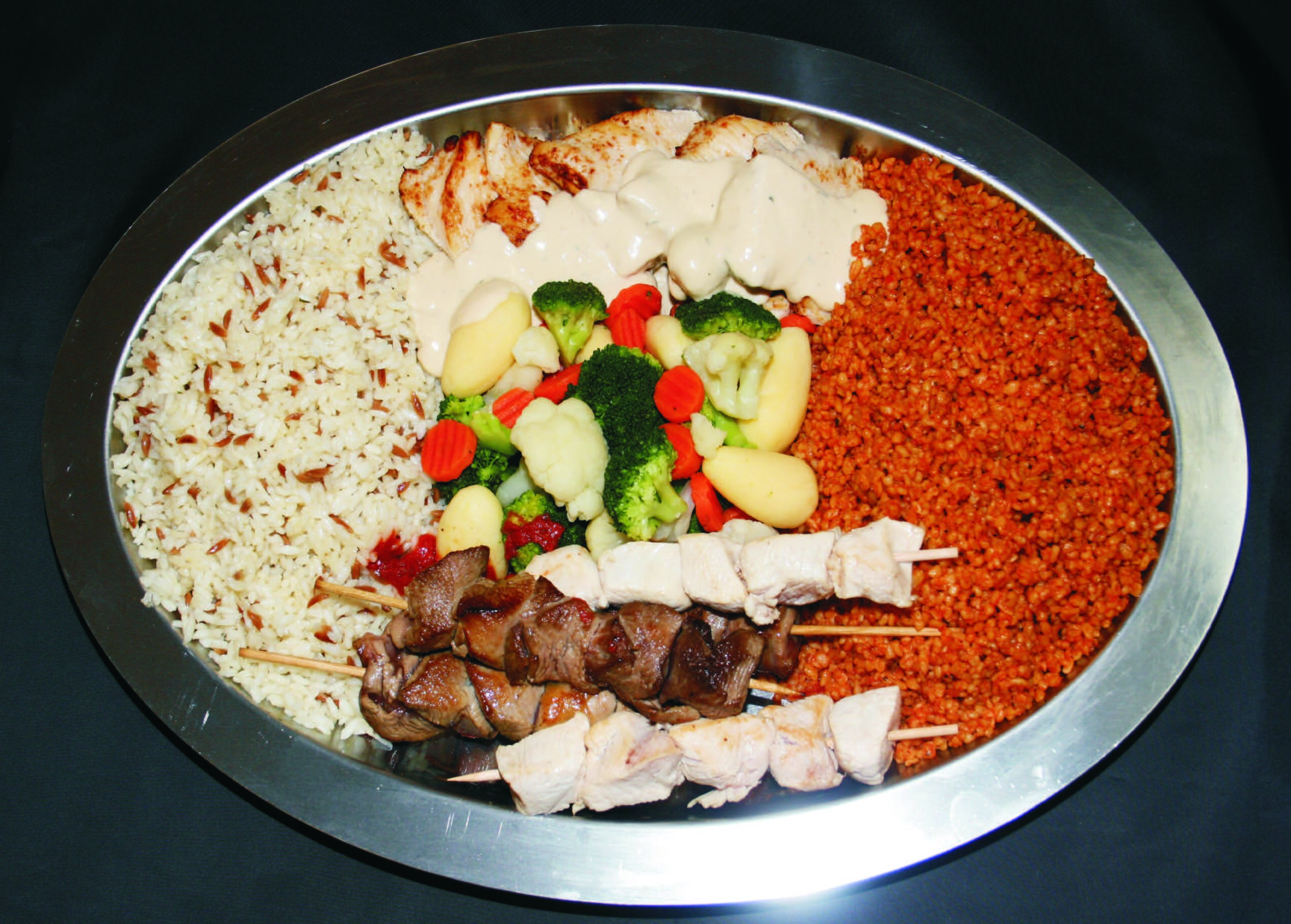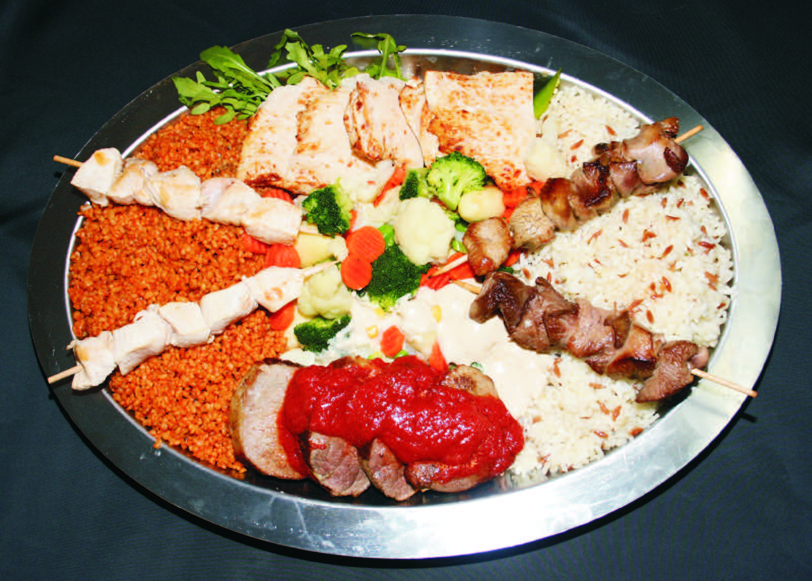 91.4 Kisilik Plate Pirinc Bulgur Sebze Soslu Tavuk Gögsü ve Sis Kebabi